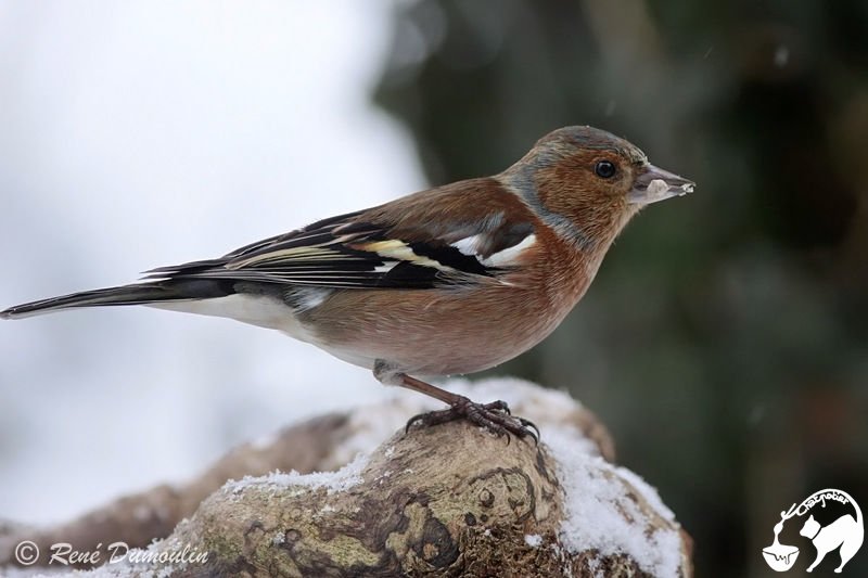 Le Pinson des arbres, ils passent l’hiver chez nous et repartent en mars dans le Juras pour retrouver leurs lieux de reproduction