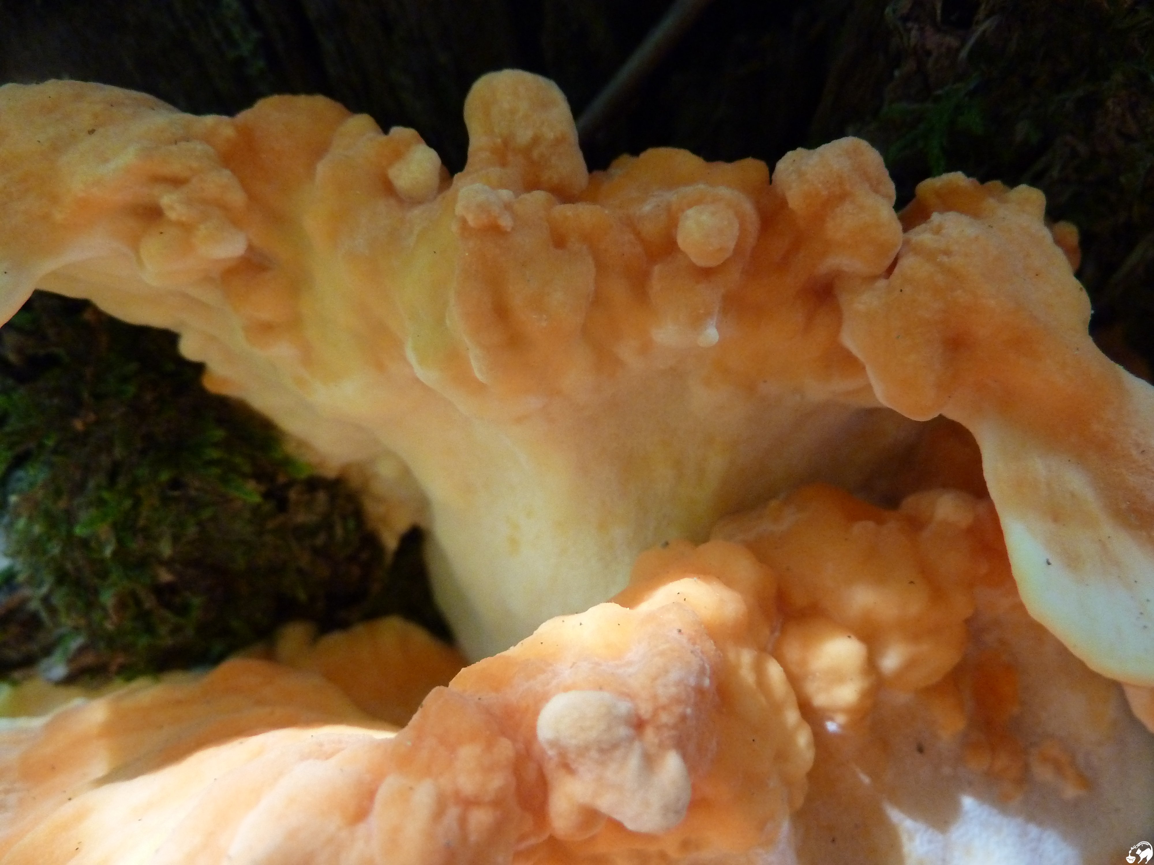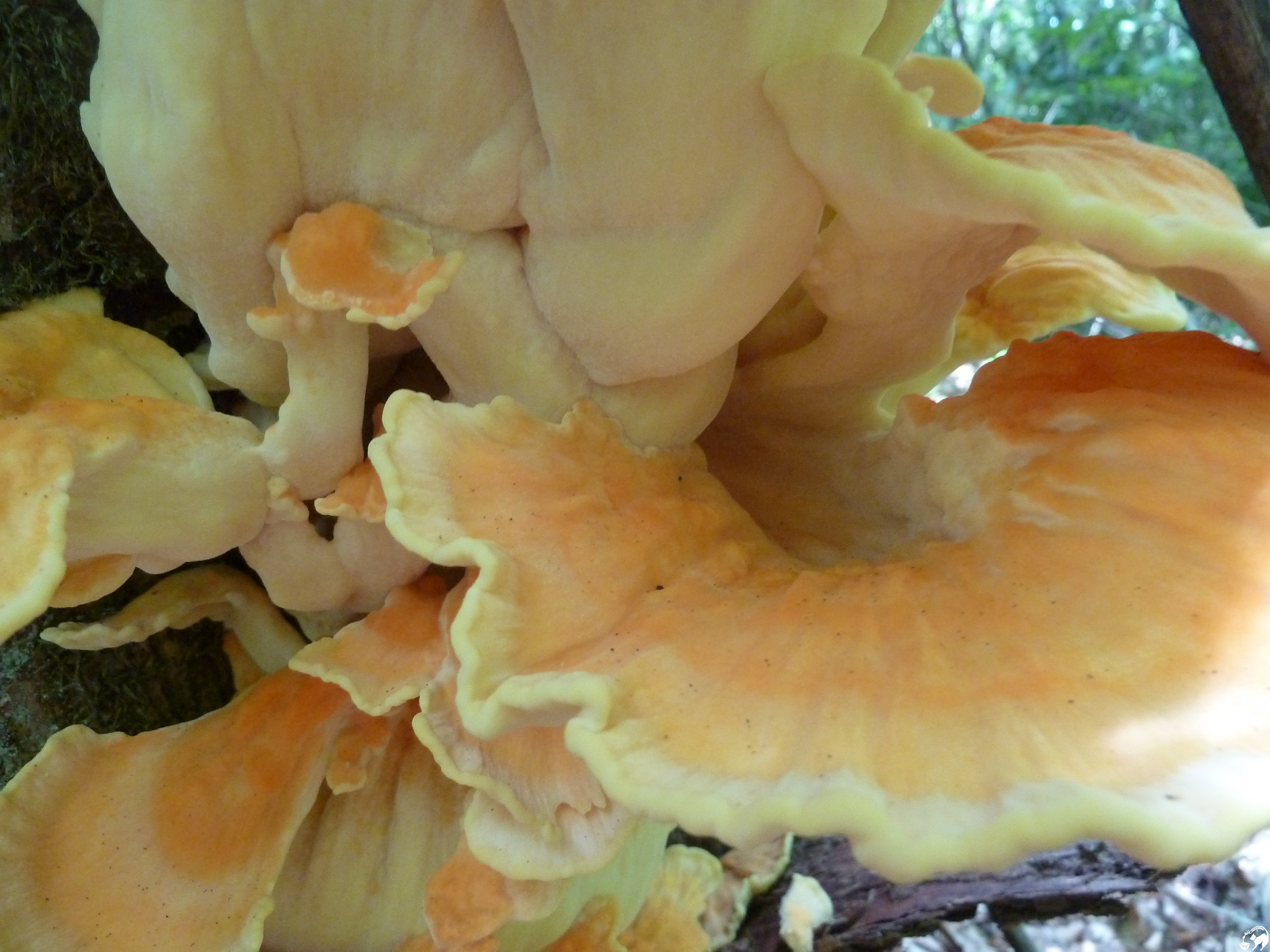 Quelques pas sous la futée dans l’ombre des grands arbres, sur le tronc d’un conifère, un champignon assez spectaculaire…